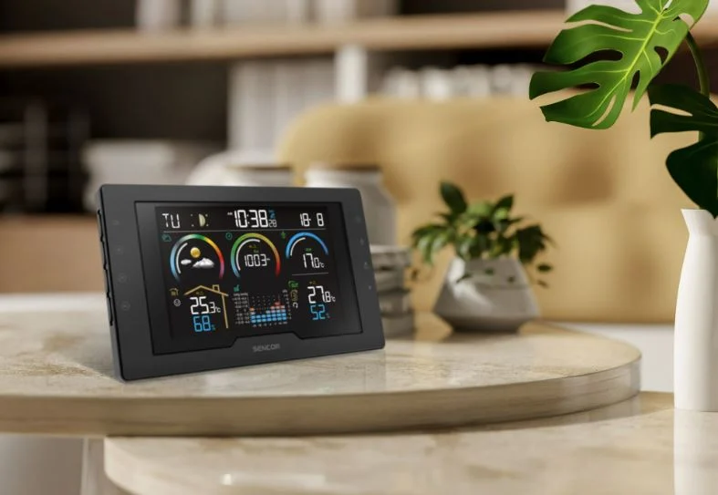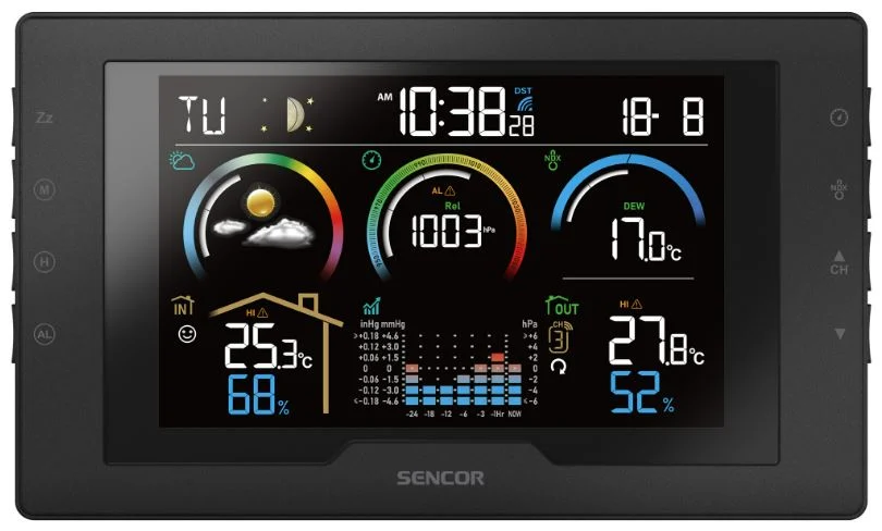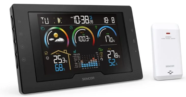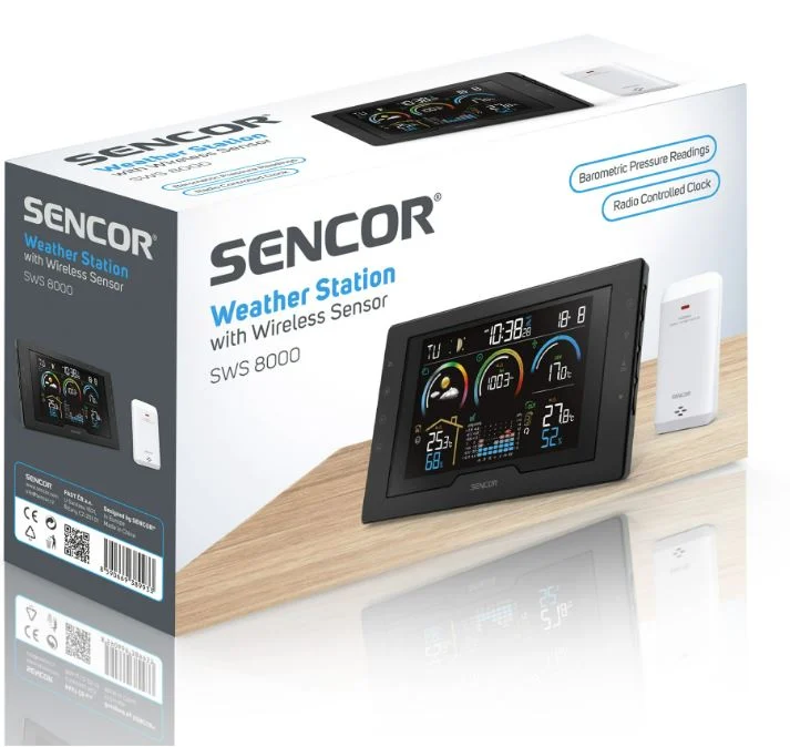 SENCOR SWS8000 ilmajaam on ideaalne valik kõigile, kes soovivad ilma jälgida ja oma kodus tervislikku keskkonda säilitada. Selge 5,7-tolline värviline LCD-ekraan kuvab ajakohast teavet sise- ja välistemperatuuri, niiskuse ja õhurõhu kohta. Samuti kuvab see lihtsate ikoonide abil 12–24-tunnise ilmaprognoosi (päikesepaisteline, pilvine, vihm, torm või lumi). Lisaks mõõtmistele on jaamal ka rõhutrendi graafik, mugavusnäidik ja hoiatused äärmuslike mõõtmiste korral. Jaam saab hoiatada tundlikke inimesi võimalike terviseprobleemide eest, mis on põhjustatud ilmastiku muutustest.