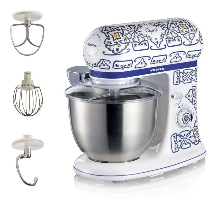 Segage, püreestage ja vahustage Capri Planetary mikseriga: kolme kaasasoleva lisatarvikuga (konks, vispel ja traatvispel) pole köögis tegutsemise võimalustel piire. Konksuga saate sõtkuda kõige keerulisemaid retsepte, nagu pitsa-, leiva- või muretainast; vispel sobib ideaalselt kreemi ja kohevate koogipõhjade segamiseks ja valmistamiseks, traatvispliga aga saate kiiresti vahustada mis tahes koostisosa, näiteks mune või koort.