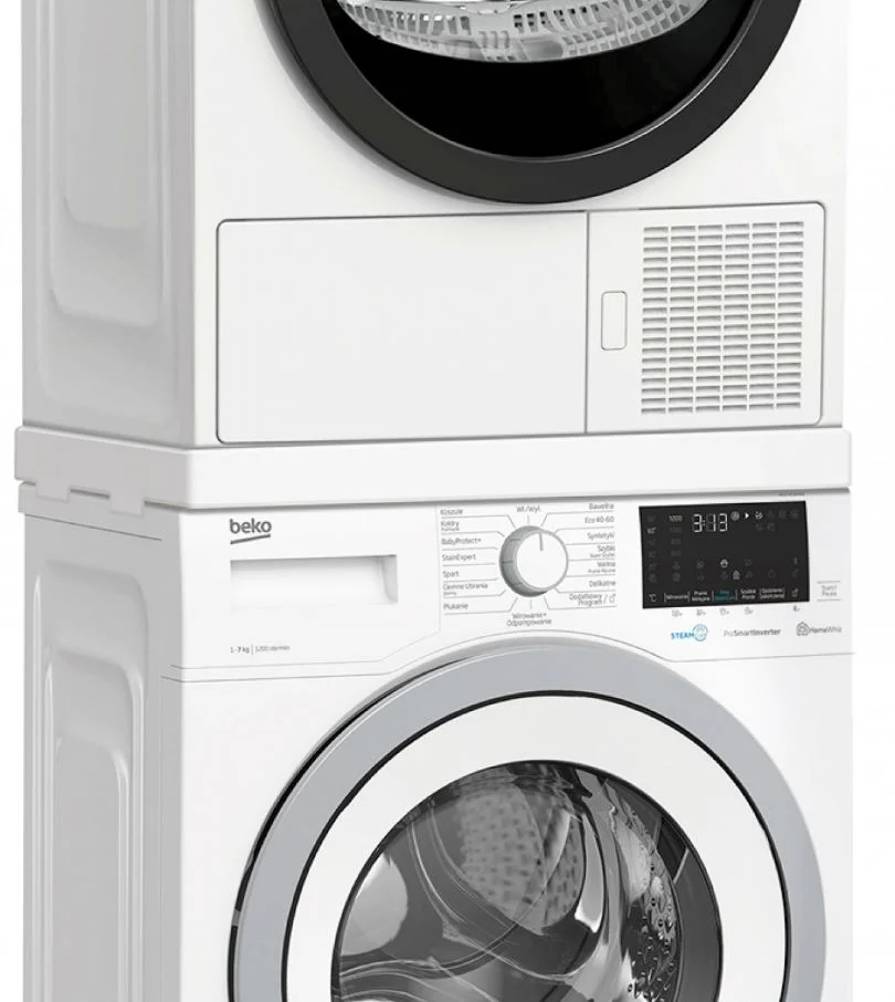 Pesumasina ühendus koos pesukuivatiga – Kas põrandal ei ole enam ruumi? Pole probleemi. Ostke eriline kinnitusdetail ja paigaldage kuivati pesumasina peale. Ühendusosa on saadaval Beko kodumasinaid müüvates kauplustes.