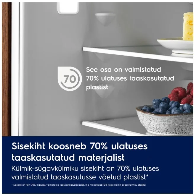 | Eriomadused | Sisekiht on valmistatud 70% ulatuses taaskasutatud plastikust. |
