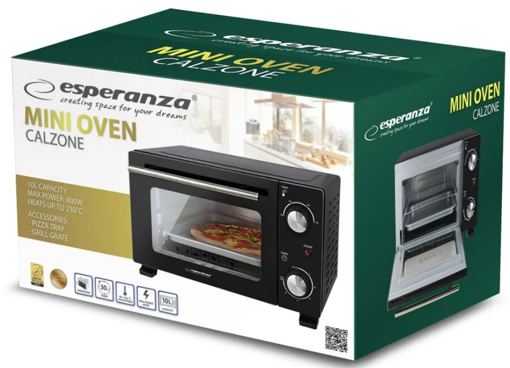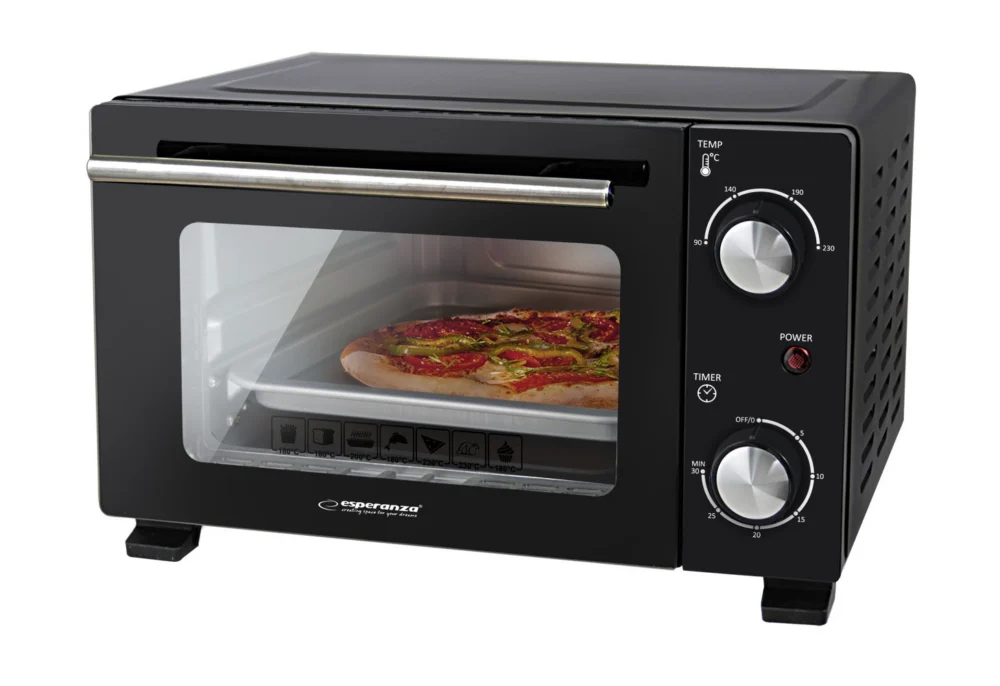 Esperanza EKO007N miniahi on kompaktne ja praktiline seade, mis võimaldab kiiresti ja lihtsalt valmistada maitsvat pitsat, vormiroogasid, friikartuleid ning küpsetada liha või kala. 800 W võimsuse ja 10-liitrise mahutavusega sobib see ideaalselt väiksematesse köökidesse, korteritesse või suvilatesse. Selle kõrge energiatõhusus tagab, et ahi saavutab ja hoiab soovitud temperatuuri kiiremini, tarbides samal ajal vähem energiat. Mudelil on elegantne disain koos praktiliste lahendustega. Kogu esiosa katvad topeltuksed (kahe raamikihiga) pakuvad paremat soojusisolatsiooni, samas kui 23,5 mm vahe väliskorpuse ja sisemise õõnsuse vahel parandab õhuringlust ja suurendab kasutaja ohutust.