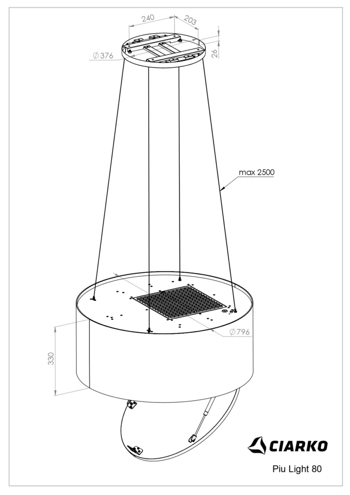 Paigaldamine – vajalik minimaalne kaugus elektripliidiplaatidest vähemalt 45 cm ning gaasi- ja segapliidiplaatidest 65 cm.