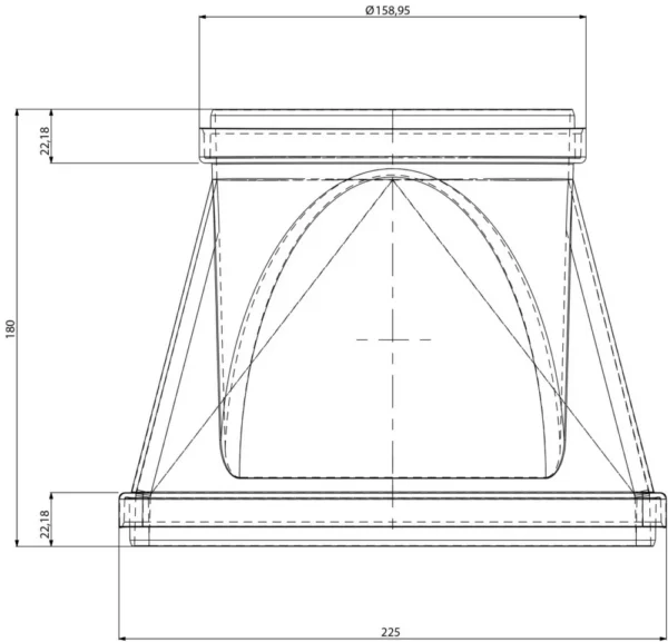 | Eriomadused | Üleminek läbimõõdust 150mm ristkülikuni 220x90mm |
