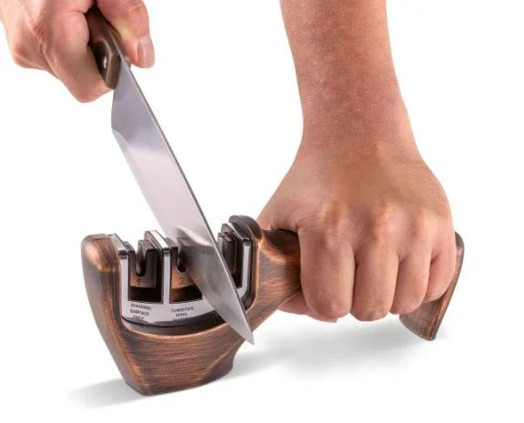 Pehmendatud ABS-plastikust libisemisvastase põhjaga 3-astmeline noateritaja.