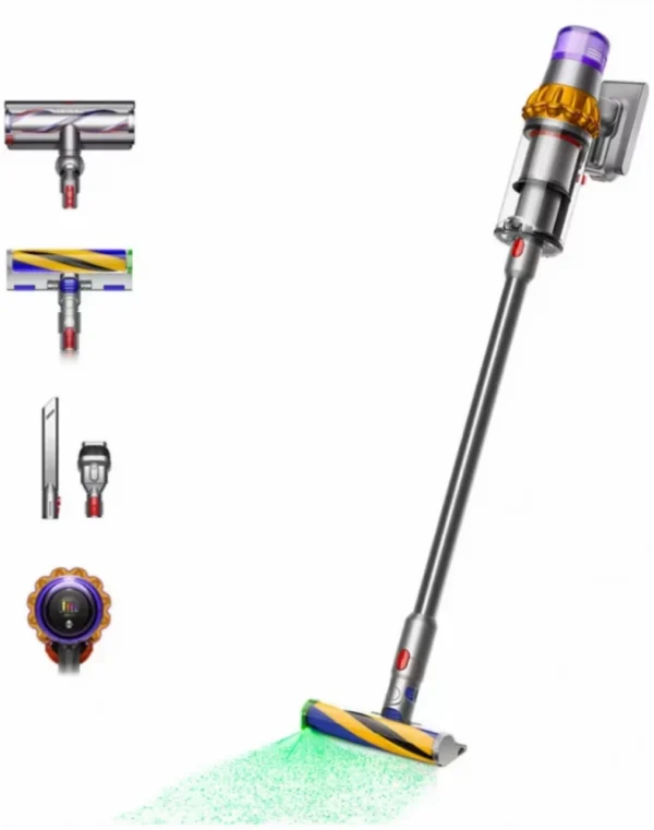 | Eriomadused | Dyson Hyperdymium-i mootor, tolmu tuvastus, kolm režiimi, LCD-ekraan, aku vahetamise võimalus, Laser Fluffy™ puhastuspea, tolmuanalüüs LCD ekraanil-reaalajas tolmuosaksete kogus ja suurus ekraanil |