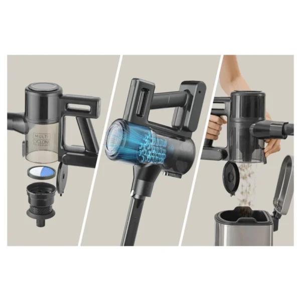 Eemaldatav käsitolmuimeja koos tarvikutega võimaldab kiiresti eemaldada kogu tolmu ja mustuse mööblilt, laudadelt või mootorsõidukitelt. HEPA tsüklonfiltreerimissüsteem püüab kinni ka kõige peenemad tolmuosakesed.