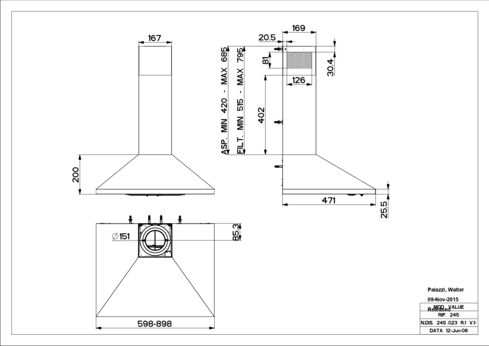 | Õhupuhastaja laius, mm | 598 |