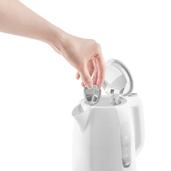 Eemaldatav katlakivi ja mustuse filter hoiab teie vee puhtana. Automaatne nupuvajutusega kaaneava teeb veekeetja veega täitmise lihtsaks vaid ühe käega. Veetaset näete veekeetja küljel oleva läbipaistva akna kaudu. Alus võimaldab veekeetjat 360° pöörata. Toitekaablit saab mugavalt aluse alumisel küljel hoida.