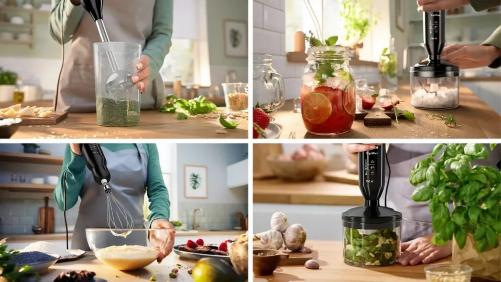 | Komplektis | 1 x Jääpurustamisnuga, 1 x Roostevabast terasest sau, 1 x Vispel, 1 x Universaalpurusti |