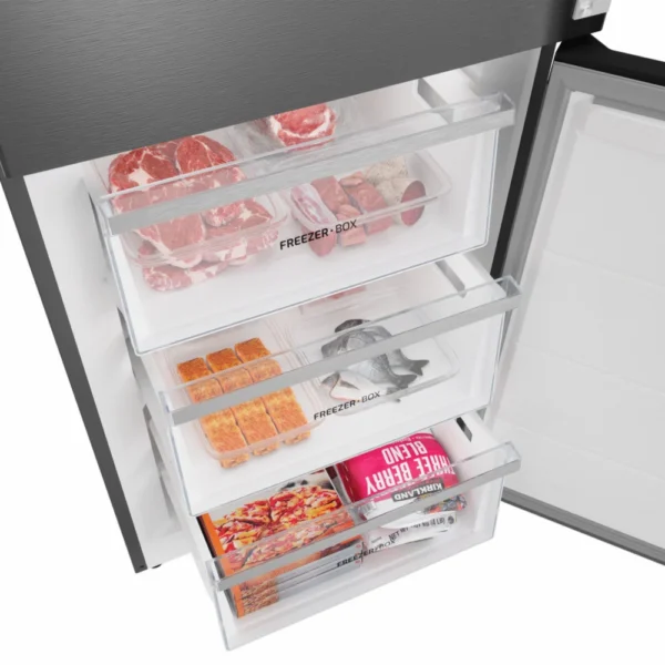 Full No Frost tehnoloogia ennetab härmatise teket läbi ühtlase kuiva ning külma õhuringluse. See tähendab rohkem ruumi, paremat jahutusjõudlust ja toidu paremat säilivust. Jätke hüvasti käsitsi sulatamisega ning tervitage püsivat värskust ja vaevatut külmiku hooldust.