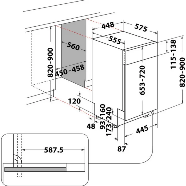 | Nõudepesumasina tüüp | Integreeritav esipaneeliga/uksega 45 cm |